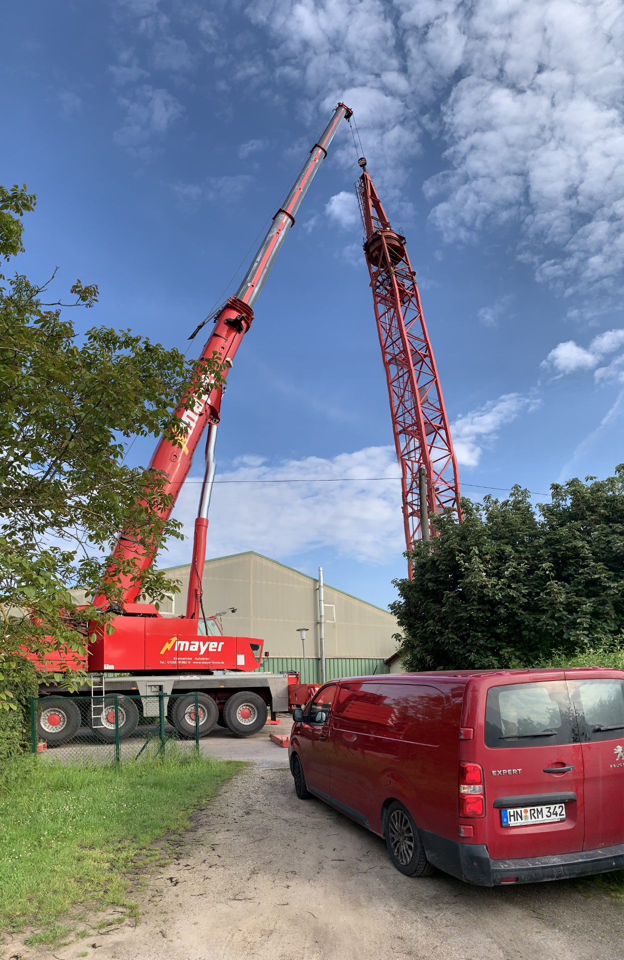 Die Arbeiten an unserer Halle haben unübersehbar mit dem Aufstellen des Krans begonnen :-)